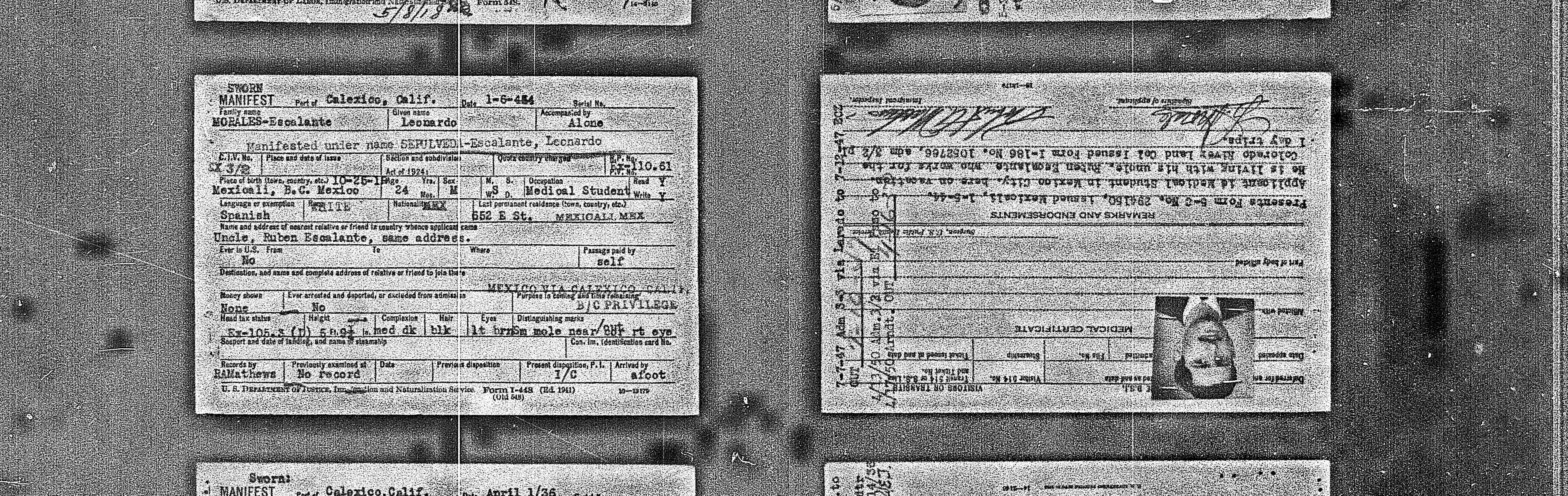 He was visiting Tio Ruben and Tia Cuca in Mexicali. One fascinating item on his manifest is “Sepulveda-Escalante” as a secondary name. What?? Did Gabriel Sr. die and Maria remarry??