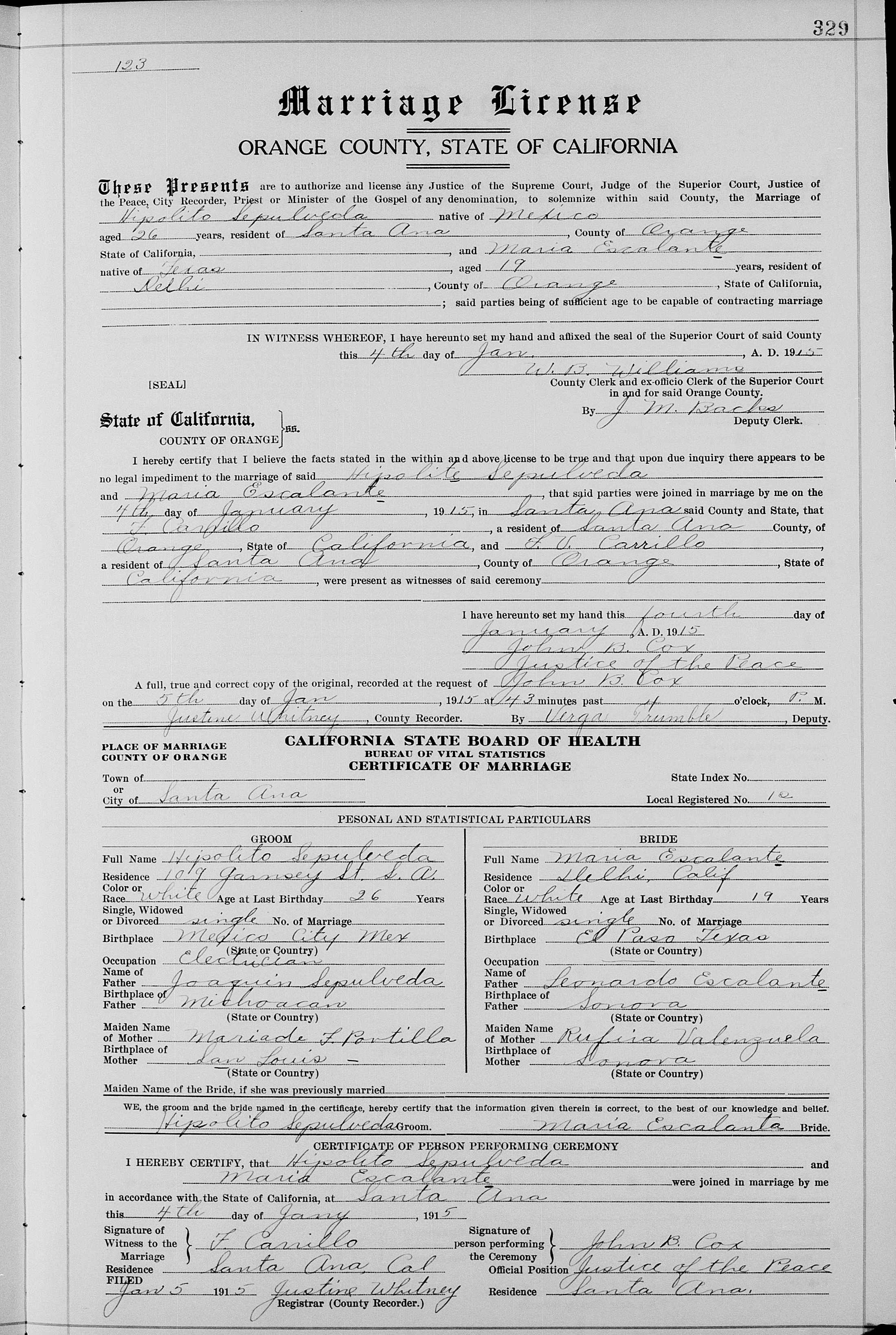 Maria and Hipolito's  Marriage License, 1915.